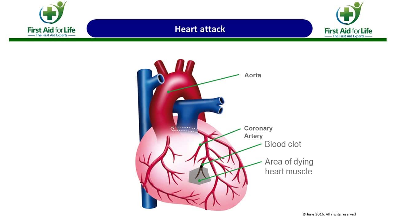 A heart attack occurs when one of the coronary arteries becomes blocked. The heart muscle is robbed of its vital blood supply and, if left untreated, will begin to die because it is not getting enough oxygen. If you are having a heart attack you are likely to be conscious and breathing.  Cardiologists have a saying; ‘Time is muscle’. The longer oxygenated blood can reach the heart, the more damage will occur. If someone is quickly transferred to hospital and the blood supply restored, they can make a good recovery.