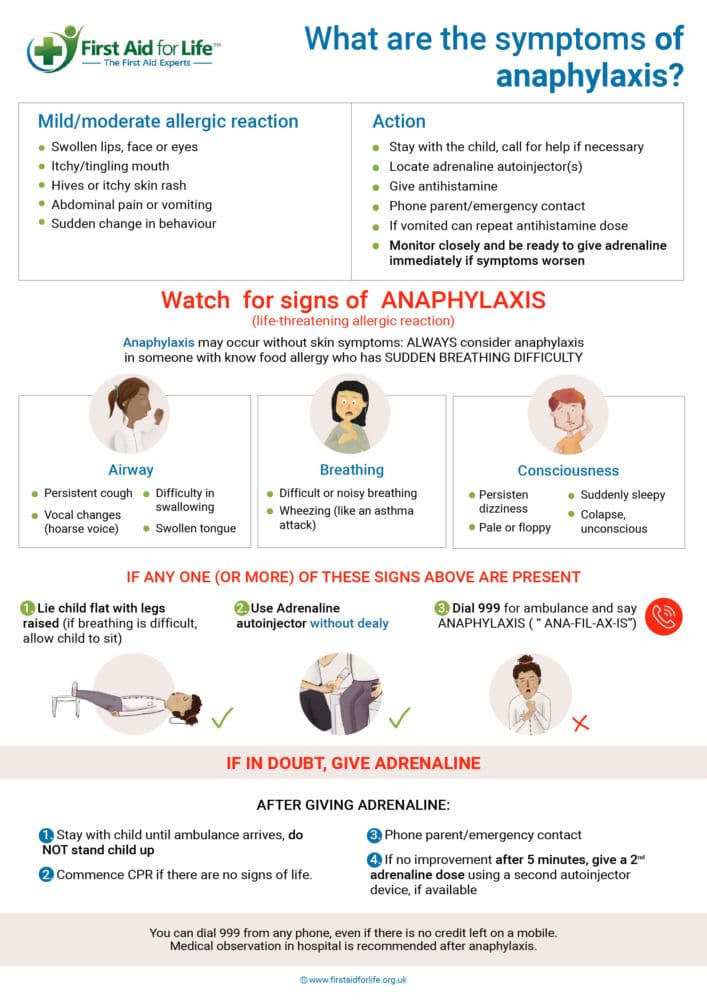 In the UK, 5–8% of children have a food allergy. Anaphylaxis can proceed rapidly and failure to administer adrenaline promptly has been associated with fatalities.