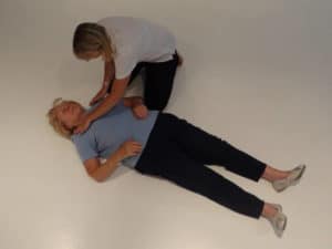 - If there are just two people, one should support the head and co-ordinate between you, rolling together whilst the other uses the recognised recovery position technique to roll them into the recovery position. Link to Recovery Position