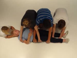 - If there is no response and they are breathing, (unless you have had advanced training on MILS and recognition of early airway obstruction) they need to be put into the recovery position quickly and carefully. This should not possible to do alone, so make sure you have others to help you.