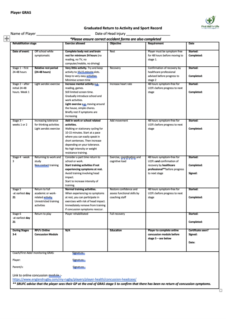 The RFU have a superb online training course specific to parents, players, teachers and coaches. https://keepyourbootson.co.uk/rugbysafe-toolkit/headcase/