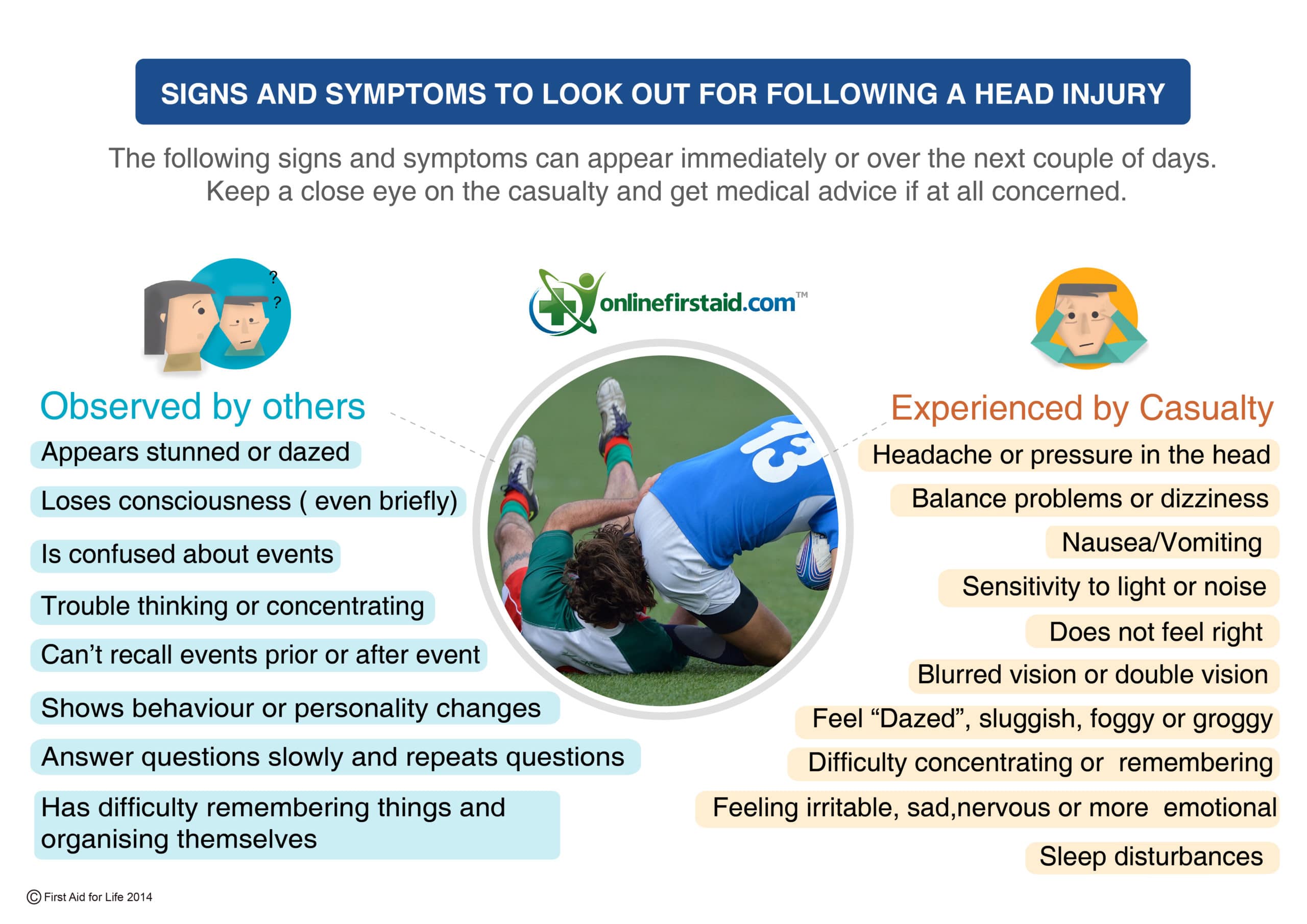 It is very important to look out for anything unusual following a head injury as a severe bang on the head could cause swelling and damage to the brain and it is vitally important that you recognise any early and worrying signs of increased pressure on the brain.