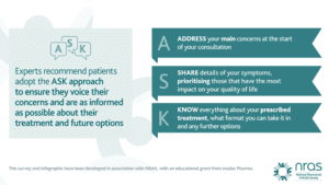 Clare Jacklin, CEO of NRAS adds; “The most important thing to remember is that with the right support of a team of experts, your child will be more able to join in the same activities etc as their friends are able to do. Shared decision-making regarding treatment options gives the best long-term outlook for children and young people with JIA. We want families to feel empowered to share decision making with their practitioner and to use the ASK approach in consultations. The NRAS team and resources are here to help on every step of yours or your child’s JIA journey. Being fully informed of all the options around medications is important and the JIA Medicines booklet freely available from NRAS will certainly help. Medicines in Juvenile Idiopathic Arthritis – JIA.”