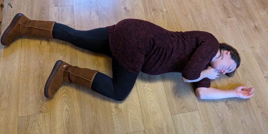 If you haven’t got a second person, you can do help relieve the pressure on the vena cava by: