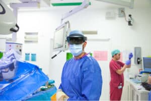 Advances in X-ray technology, in particular CT/MRI scans, has meant that we are able to meticulously plan treatment strategies. But this does not directly translate to the same precision surgically. If one views the goal of surgery, broadly speaking, to remove diseased tissue, not infrequently, either some diseased tissue is left behind, or an unnecessary amount of healthy tissue is removed along with the pathology. We have thus far been unable to take all the wealth of information obtained from these detailed scans and apply that during an operation…..until now! By using the power of augmented reality, we can develop ‘X-ray vision’ and see into our patients. Using patient-specific scans, 3-dimensional holograms can be generated and projected directly on to a patient that is undergoing surgery. This can be viewed using specialised headsets such as Microsoft HoloLens or on the operating screens –